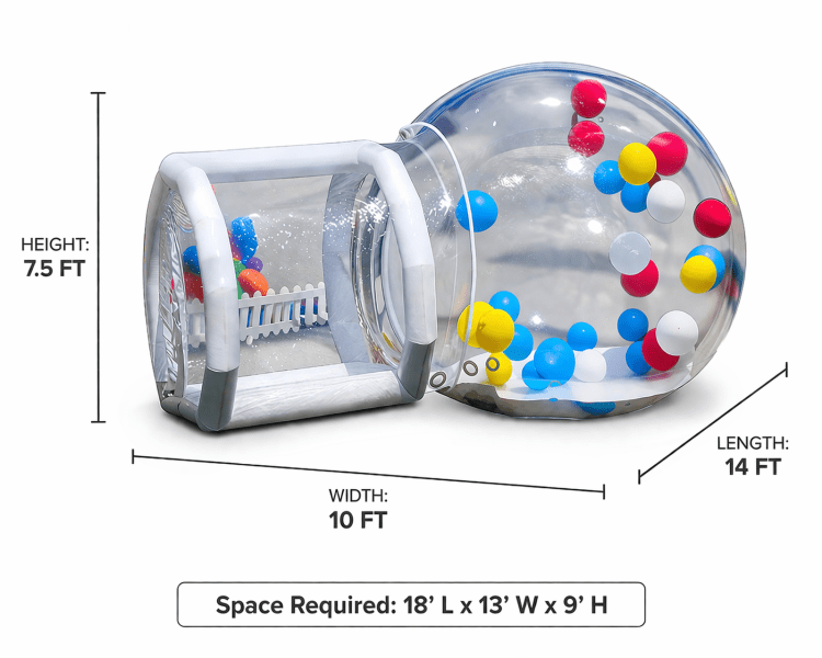 The Bubble House is a larger-than-life inflatable bounce house that offers endless fun and excitement for both kids and adults alike. Designed for various events and gatherings, this playful structure resembles a whimsical house filled with air, inviting you to jump, bounce, and laugh within its bouncy walls. Ideal for celebrations, family get-togethers, or any outdoor event where fun is on the agenda, the Bubble House promises an unforgettable experience of joy and laughter. It's also built with safety and durability in mind, ensuring a worry-free time for everyone involved. Get ready to elevate your next event with the Bubble House, where the fun never stops, and memorable moments are just a bounce away. Comes with 25 multicolor balloons (optional).