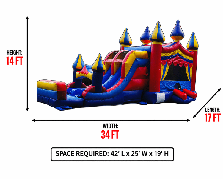 Perfect for parties, school events, or backyard celebrations, the Carnival Combo delivers unforgettable fun and is designed to be used wet or dry—so the fun doesn’t stop no matter the weather!