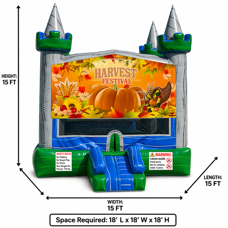Make your next gathering unforgettable with the Pumpkin Green Castle—where every jump is a leap into fall fun!