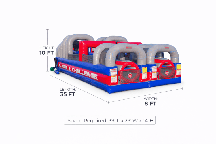 Double the length, double the thrill! The All Star Double Obstacle Course is a high-octane race to the finish line—loaded with tunnels, pop-ups, climbing walls, and slides that keep the adrenaline pumping from start to finish. This inflatable is perfect for school events, birthday parties, community festivals, or anyone looking to level up their fun!