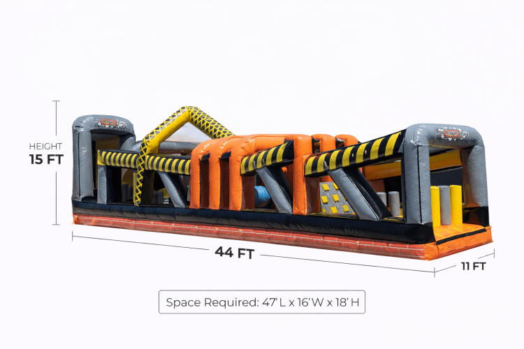 Get ready to conquer the job site! This 44-foot construction-themed obstacle course is packed with tunnels, pop-ups, crawl-throughs, and climbing walls that will have kids racing to the finish line!