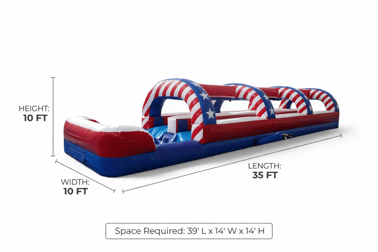 This red, white & blue dual-lane slip & slide is the star of any party!