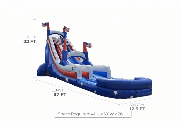 Kids (and grown-ups!) will climb to the top, zoom down the slide, and land in a refreshing pool of fun. It’s perfect for 4th of July parties, Memorial Day BBQs, Veterans Day events, or any day you want to celebrate in true American style!